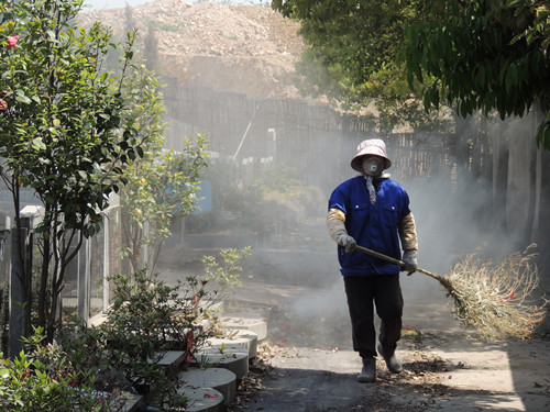 白天祭掃過后,紙錢的灰燼和沒拿走的祭品等垃圾,給墓區(qū)的保潔增加了不少壓力,為了讓市民有序掃墓,墓區(qū)的保潔員游走在各個(gè)墳區(qū),打掃祭祀者留下的垃圾,她們成了墓區(qū)最特殊的祭掃人。