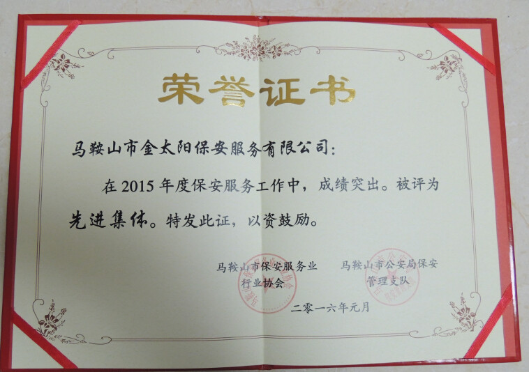 會(huì)上,我金太陽(yáng)保安服務(wù)公司總經(jīng)理朱曉軍代表2015年度保安服務(wù)業(yè)先進(jìn)集體上臺(tái)發(fā)言。會(huì)議中強(qiáng)調(diào),保安工作是平凡而艱苦的,既然我們選擇了保安工作,就深知,干一行,愛(ài)一行,專一行的道理。嚴(yán)格把關(guān)保安持證上崗,我公司員工會(huì)齊心協(xié)力把保安工作做好,不辜負(fù)領(lǐng)導(dǎo)對(duì)我們殷切的希望。此次我公司受到的先進(jìn)集體的表彰和先進(jìn)個(gè)人榮譽(yù)證書(shū)。