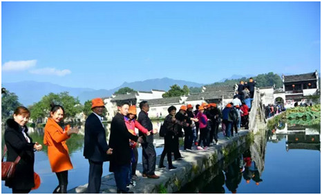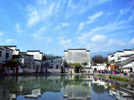 宏村位于安徽省黟縣東北部,地勢較高,常常云蒸霞蔚,時而如潑墨重彩,時而如淡抹寫意,恰似山水長卷,融自然景觀和人文景觀為一體,被譽為“中國畫里的鄉(xiāng)村”。整個村子呈“?!毙徒Y(jié)構(gòu)布局,被譽為當(dāng)今世界歷史文化遺產(chǎn)的一大奇跡。以村西北一溪鑿圳繞屋 過戶,九曲十彎的水渠,聚村中天然泉水匯合蓄成一口斗月形的池塘,這種科學(xué)的村落水系設(shè)計,不僅為村民解決了消防用水,而且調(diào)節(jié)了氣溫,為居民生產(chǎn)、生活用水提供了方便,創(chuàng)造了一種“浣汲未防溪路遠,家家門前有清泉”的良好環(huán)境。