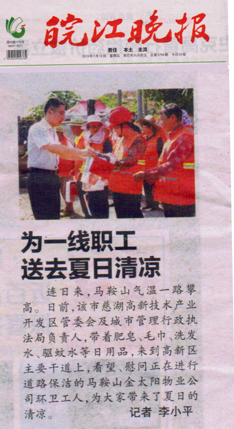 為一線職工送去夏日清涼—來自《皖江晚報(bào)》報(bào)道