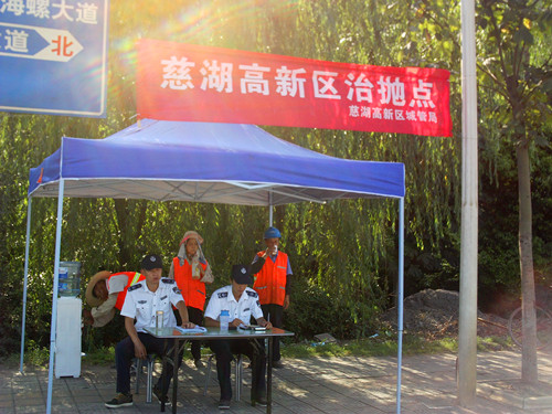 2013年7月,慈湖高新區(qū)城市管理行政執(zhí)法局在北環(huán)路與沿江大道交接處,設(shè)立了治理違章拋灑查處點(diǎn),并為我們金太陽物業(yè)環(huán)衛(wèi)工人提供免費(fèi)飲用水及納涼休息…